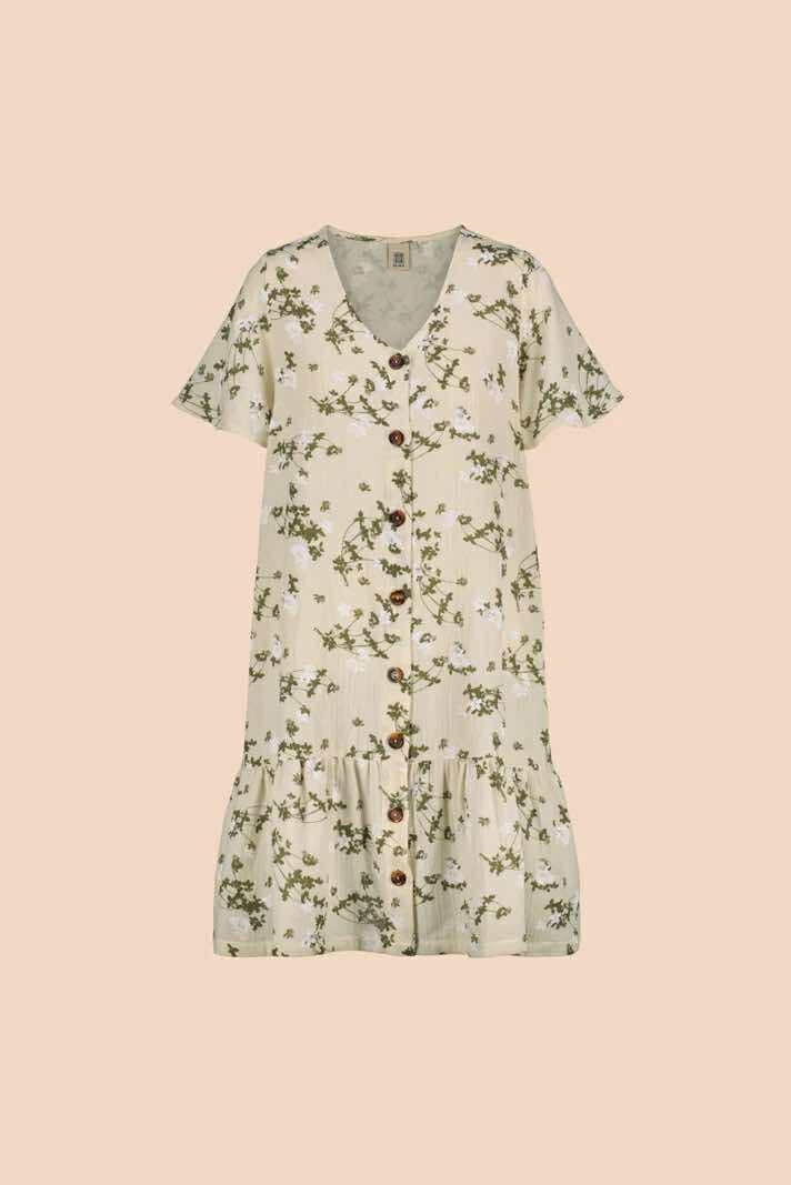 Kaiko Frill Button Dress, Clover Blossom