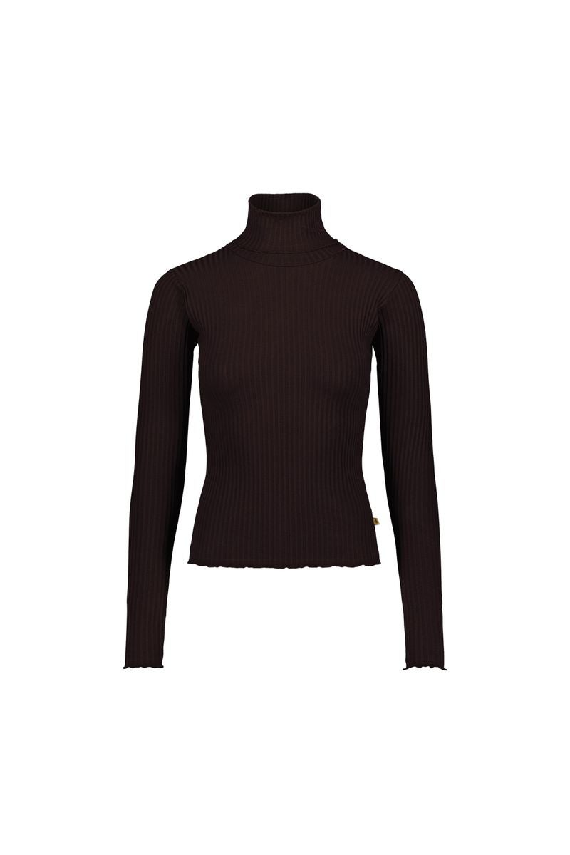 Korkealaatuinen naisten paita on leikkaukseltaan vartalonmyötäinen ja yltää ylälantiolle. Helma, hihansuut ja poolokaulus on viimeistelty tyylikkäillä rullapäärmeillä.
